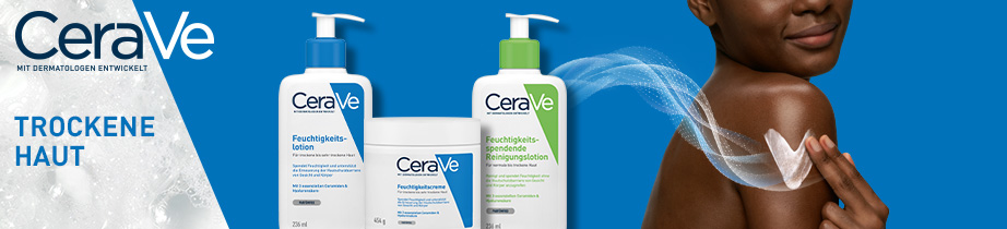 Die Ursache für trockene bis sehr trockene Haut liegt in einer geschwächten Hautschutzbarriere, wodurch Feuchtigkeit leichter entweichen und die Haut austrocknen kann. Die Begleitsymptome von trockener Haut reichen von Spannungsgefühlen über Schuppenbildung bis zu Juckreiz. Die CeraVe-Produkte für trockene Haut helfen dabei, die Anzeichen trockener bis sehr trockener Haut an Gesicht und Körper zu mildern. Neben bewährten Feuchtigkeitsspendern wie Hyaluronsäure und Glycerin enthalten die Cremes, Lotions und Reinigungen für trockene Haut auch drei essenzielle Ceramide. Diese Lipide sind natürlicher Bestandteil der Hautschutzbarriere und sorgen dafür, dass die Haut Feuchtigkeit besser speichern und Feuchtigkeit nicht so leicht entweichen kann – für eine geglättete und beruhigte Haut.
