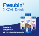 Fresubin® Drinks und Cremes als hochkalorische, eiweißreiche Trinknahrung können helfen, den Körper mit den benötigten Nährstoffen zu versorgen und einer bestehenden oder drohenden Mangelernährung entgegen zu wirken Durch die hohe Nährstoffdichte ist die Trinknahrung sehr gut geeignet, den täglichen Bedarf an Kalorien, Protein, Vitaminen und Spurenelementen zu decken.