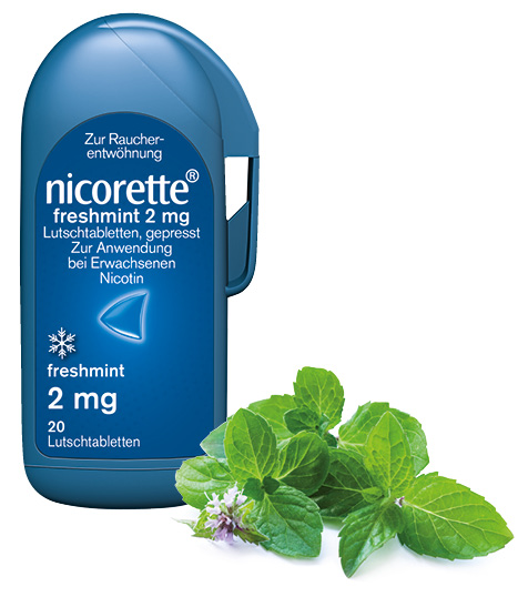 Die nicorette® Lutschtablette: In ihrer cleveren Box für unterwegs passt sie in jede Hosentasche und ist eine gute und diskrete Lösung für alle, die sich auch unterwegs vor Rauchverlangen schützen wollen ohne dabei aufzufallen. Erhältlich als 2 mg (Packungsgrößen 20 und 80 Stück) und als 4 mg (80 Stück) in der Geschmacksrichtung freshmint. Die Lutschtablette 2 mg ist für Raucher vorgesehen, die bis zu 20 Zigaretten pro Tag rauchen; die Lutschtablette 4 mg wurde für Raucher mit einem Zigarettenkonsum über 20 Zigaretten pro Tag entwickelt.
